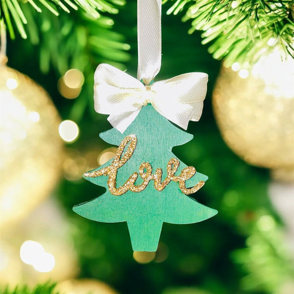 Green & Gold Glitter Love Christmas Tree Ornament Set