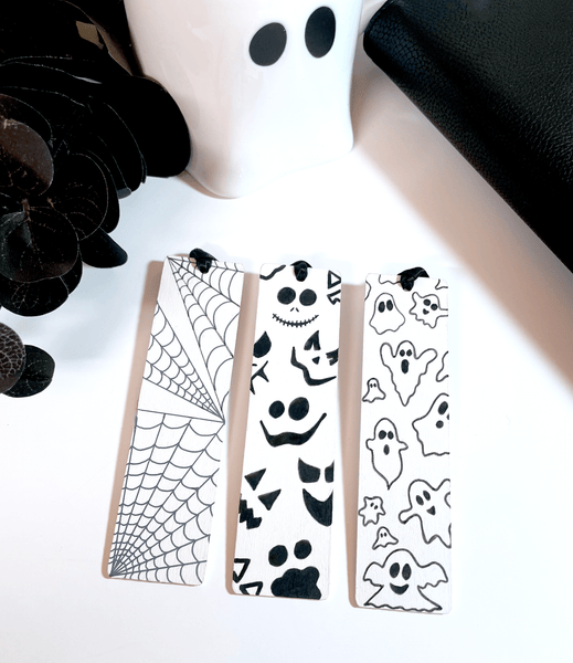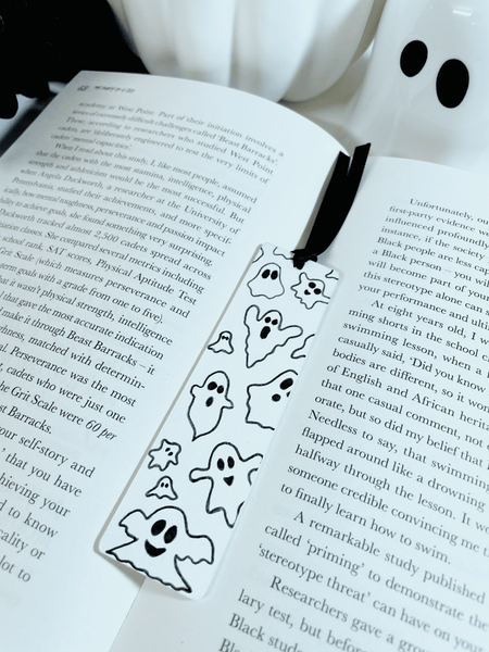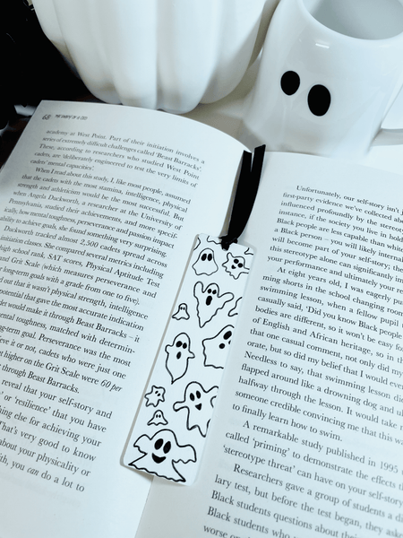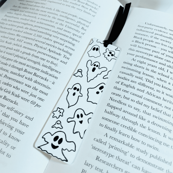 Our Halloween Monochrome Ghost Bookmarks are hand illustrated to bring charm and originality to your wonderful world of reading. A cute playful Spooky Design to hold the place in your latest page turner or cosy autumnal read.