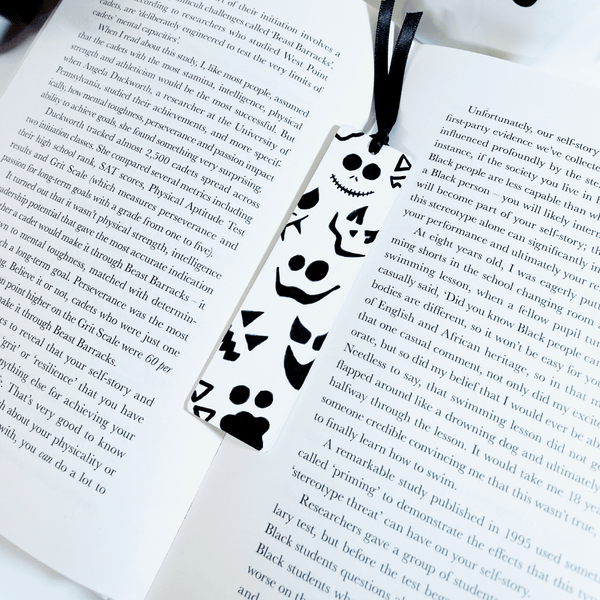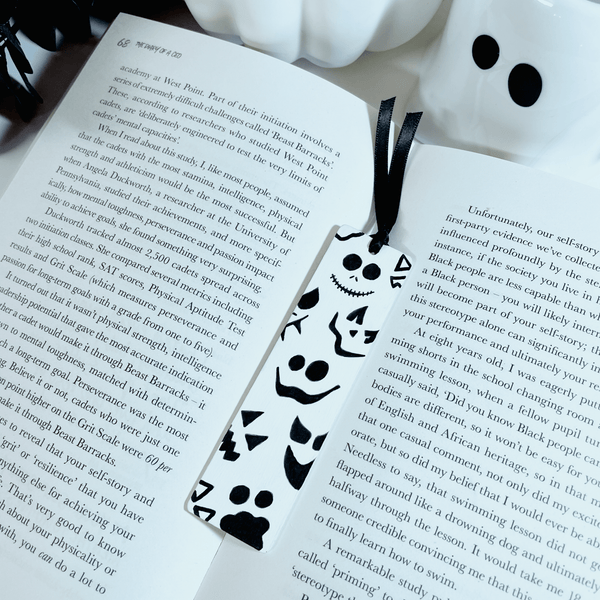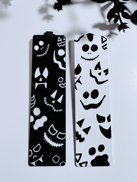 Our White & Black Pumpkin Face Bookmarks are hand illustrated to bring charm and originality to your wonderful book reading days and nights. A cute monochrome Spooky Design to save the pages in your latest horror series or haunted Autumnal read.