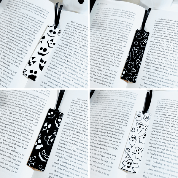 Our Black & White Pumpkin Face Bookmarks are hand illustrated to bring charm and originality to your wonderful book reading days and nights. A cute monochrome Spooky Design to save the pages in your latest horror series or haunted Autumnal read.